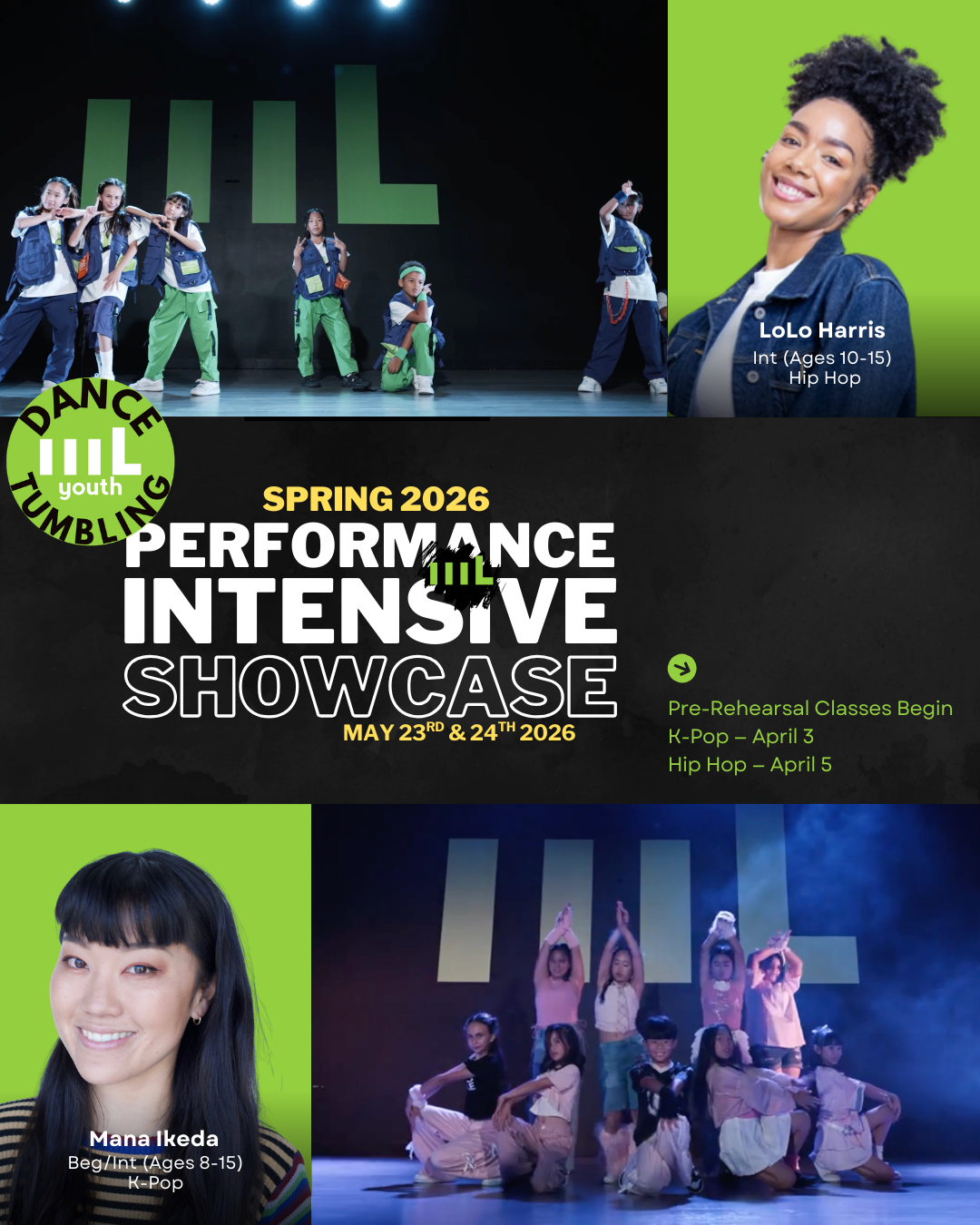 While the showcase includes youth performers, most pieces are choreographed and performed by adults. Some music or themes may not be specifically tailored for younger audiences. We maintain a respectful and creative environment and encourage families to decide what feels appropriate for their family.